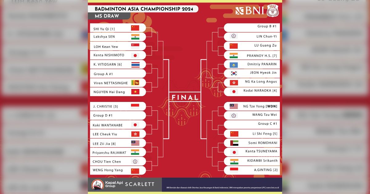 | 男子S | Lee Zii Jia | Jonatan Christie | Chico Aura Dwi Wardoyo |