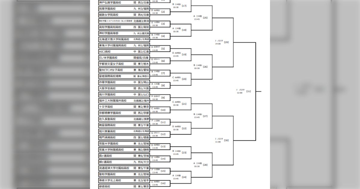 | 32 | 【静岡】藤枝順心 | 【東京】十文字 | 【大阪】大阪学芸 【大分】柳ヶ浦 |