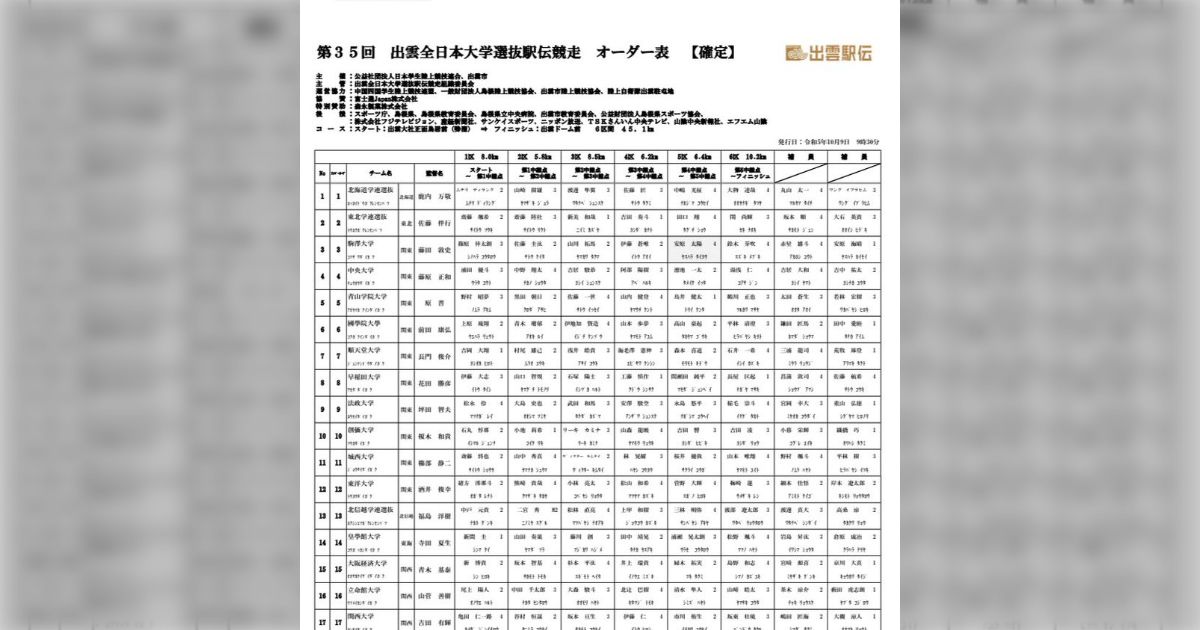 「第30回 出雲全日本大学選抜駅伝競走」