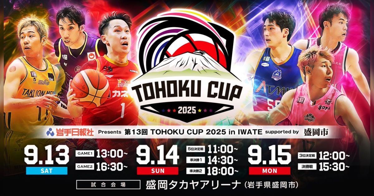 2025年9月に開催予定のバスケットボール(Bリーグ)「第13回 東北カップ」の結果を速報でお伝えしていきます。 東北6チームが参加し、トーナメント優勝を目指します!